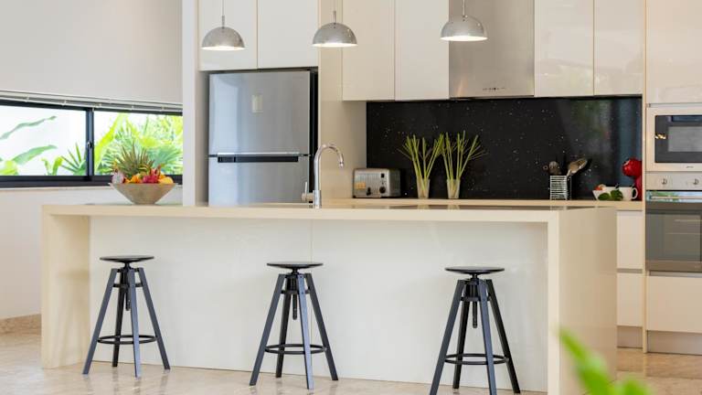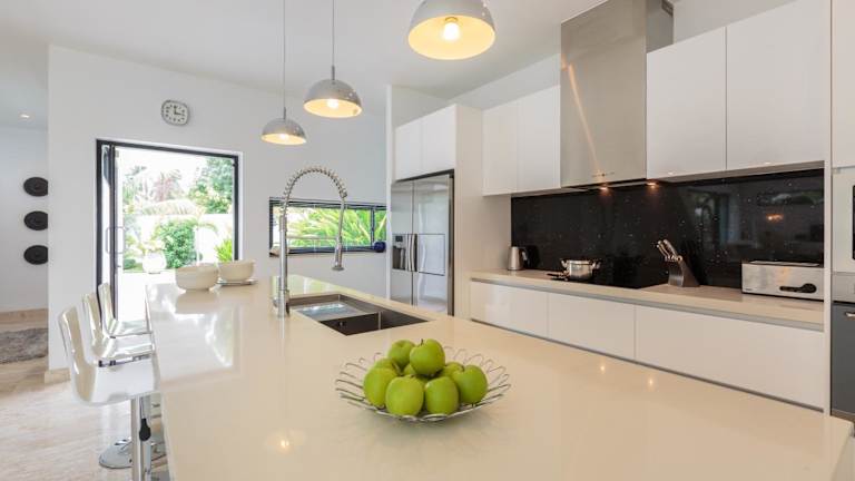 Die Villa umfasst drei Schlafzimmer, ein Wohnzimmer und eine voll ausgestattete Küche mit Kühlschrank und Kaffeemaschine. Insgesamt stehen vier Badezimmer zur Verfügung, die jeweils mit einem Bidet und einer Dusche ausgestattet sind. Zur Ausstattung gehören Klimaanlage, Handtücher und Bettwäsche. Die Unterkunft bietet Nichtraucherzimmer und unterliegt bestimmten Richtlinien hinsichtlich der Gästeanzahl.
