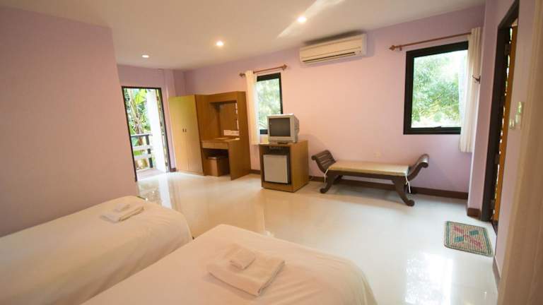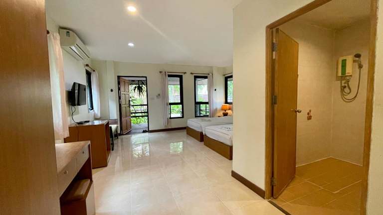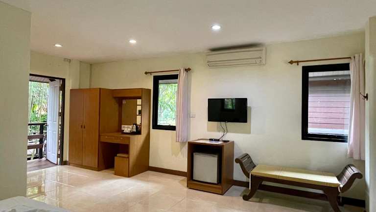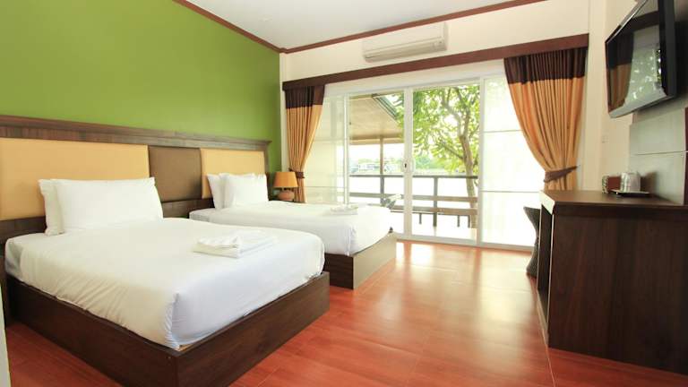 Die Zimmer im Baantip Suantong sind klimatisiert und bieten kostenfreies WLAN. Jedes Zimmer verfügt über einen Balkon mit einem atemberaubenden Blick auf den Garten und den Fluss. Zur Ausstattung gehören auch Kabel-TV, ein gemütlicher Sitzbereich und ein eigenes Badezimmer.