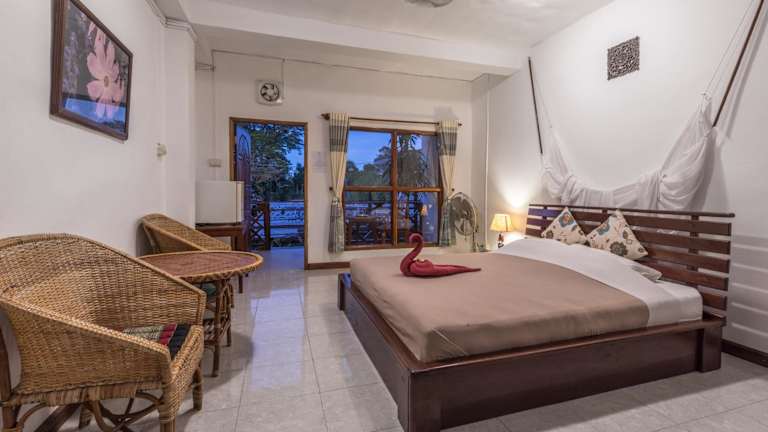 Das BABA Guesthouse in Ban Dondét bietet eine grüne Oase der Ruhe und Entspannung. Genießen Sie den Blick auf den Garten oder den Fluss von Ihrem Balkon aus und entspannen Sie in den gemütlichen Zimmern mit kostenlosem WLAN. Das hauseigene Restaurant verwöhnt Sie mit köstlichen Speisen und der Fahrradverleih ermöglicht es Ihnen, die Umgebung auf eigene Faust zu erkunden. Der Wäscheservice und kostenfreie Parkplätze runden das Angebot ab.