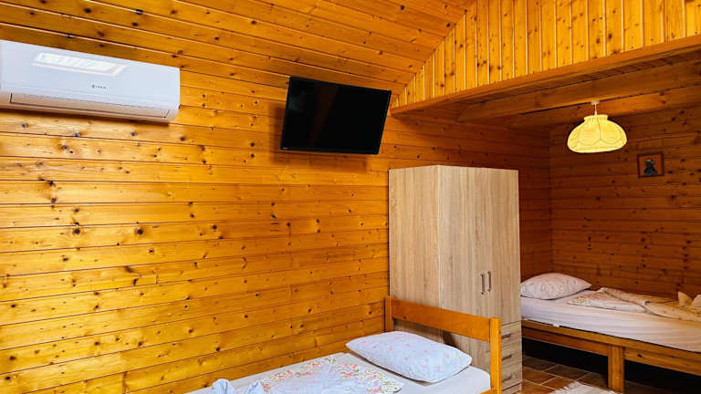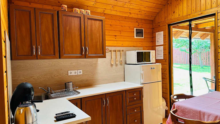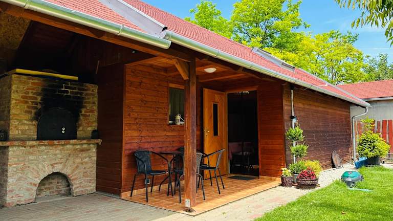 Das Chalet im Babett Vendégház ist klimatisiert und verfügt über ein gemütliches Schlafzimmer, in dem Sie erholsame Nächte verbringen können. Der Wohnbereich ist mit Sat-TV und einem Essbereich ausgestattet, wo Sie Ihre Mahlzeiten genießen können. Die Küchenzeile bietet alles, was Sie für die Zubereitung von Speisen benötigen, einschließlich eines Kühlschranks und eines Backofens. Das Chalet bietet zudem Zugang zu einer Terrasse, von der aus Sie den Blick auf den Garten genießen können.