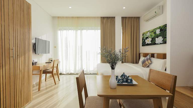 Die Zimmer im Babylon Garden Da Nang sind komfortabel und modern eingerichtet. Jedes Zimmer verfügt über eine Klimaanlage, einen gemütlichen Sitzbereich, einen Flachbild-Sat-TV und eine gut ausgestattete Küche mit einem Essbereich. Ein Safe und ein eigenes Bad mit kostenfreien Pflegeprodukten und einem Haartrockner sind ebenfalls vorhanden. Bettwäsche und Handtücher werden gestellt, um den Gästen einen angenehmen Aufenthalt zu ermöglichen.