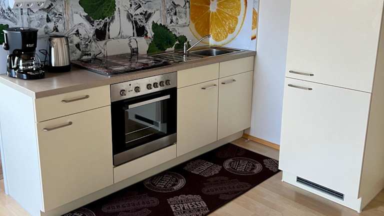 Das Apartment besteht aus einem Schlafzimmer, einem Wohnzimmer und einer voll ausgestatteten Küche, die mit einem Kühlschrank und einer Kaffeemaschine ausgerüstet ist. Des Weiteren gibt es ein Badezimmer mit Dusche und kostenlosen Pflegeprodukten. Handtücher und Bettwäsche werden zur Verfügung gestellt.