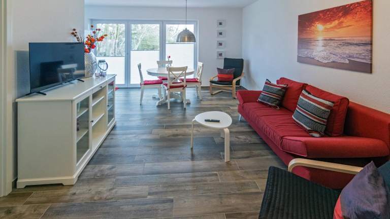 Das klimatisierte Apartment im Hotel Backbord verfügt über 2 Schlafzimmer, die für einen erholsamen Schlaf sorgen. Ein Flachbild-Sat-TV steht zur Unterhaltung zur Verfügung. Die Küche ist gut ausgestattet mit einem Kühlschrank und einem Backofen, so dass die Gäste ihre eigenen Mahlzeiten zubereiten können.