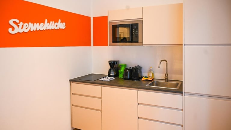 Die Ferienwohnung umfasst ein Schlafzimmer und ist mit einem Flachbild-TV sowie einer voll ausgestatteten Küche versehen. Diese Küche bietet einen Kühlschrank, einen Geschirrspüler, eine Waschmaschine, eine Mikrowelle und eine Herdplatte.