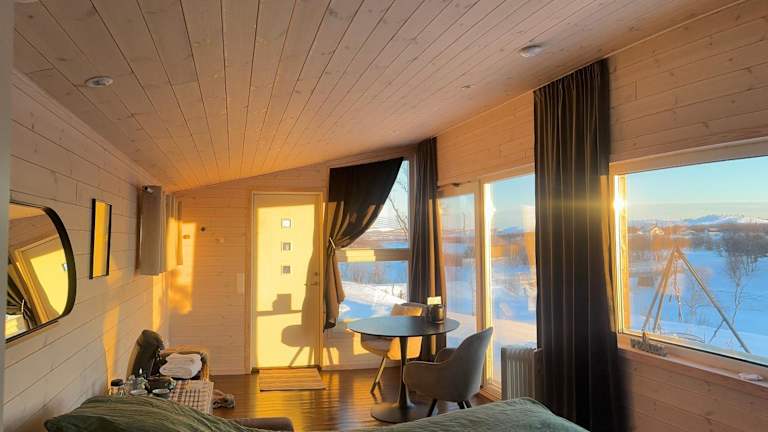 Das Saunahouse by the river befindet sich in Varangerbotn und bietet eine idyllische Lage inmitten der Natur. Die Umgebung lädt zu Aktivitäten wie Wandern, Skifahren und Angeln ein. Erkunden Sie die malerischen Landschaften und genießen Sie die Ruhe und Stille der Umgebung. Der Flughafen Vadsø ist nur 56 km entfernt und bietet eine bequeme Anreisemöglichkeit.