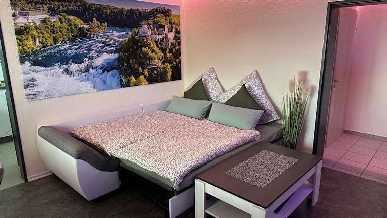 Die Unterkunft Bähnleblick Blumberg befindet sich in ruhiger Lage mit Bergblick, etwa 31 km entfernt vom MAC - Museum Art & Cars. Die Umgebung bietet Möglichkeiten zum Wandern und Radfahren, und Sehenswürdigkeiten wie das IWC Museum sind nur 26 km entfernt, während der Rheinfall 30 km von der Unterkunft entfernt ist.