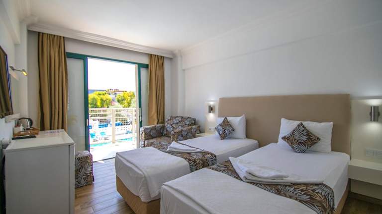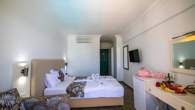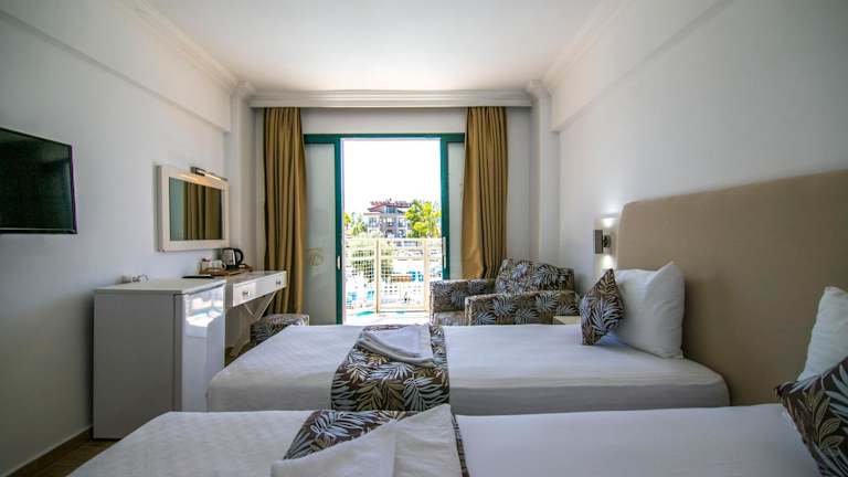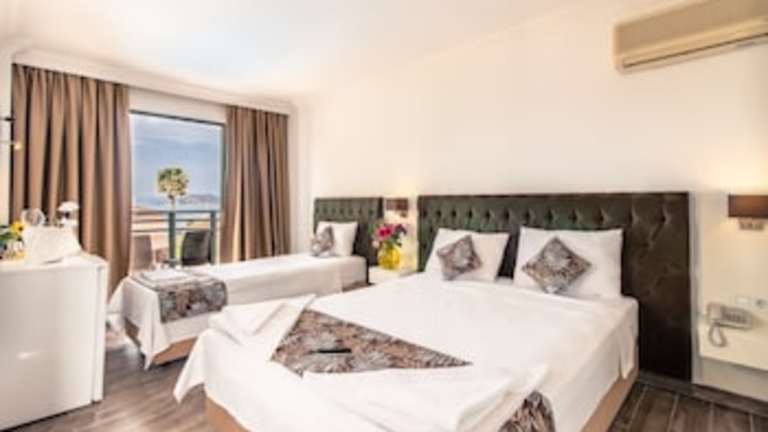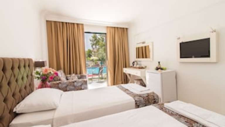 Das Bahar Hotels befindet sich in Fethiye, nur 400 m vom Calis Strand entfernt. Diese Lage ist ideal, um die Sonne zu genießen und das Meer zu erleben. In der Umgebung finden Sie auch verschiedene Restaurants, Bars und Geschäfte. Der Yachthafen Ece Saray ist nur 7 km entfernt und Saklikent erreichen Sie nach 46 km. Der Flughafen Dalaman ist ebenfalls gut erreichbar und liegt 49 km entfernt.