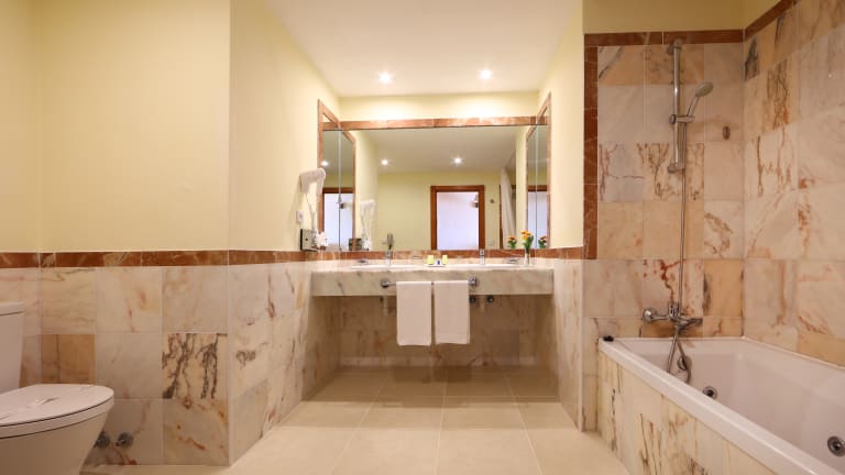 Drei Zimmer typen: Standard, Standard mit Meerblick und Juniorsuite. Die Juniorsuiten sind größer als die Standardzimmer. Ausgestattet mit: Kingsize-Bett oder 2 Einzelbetten Deckenventilator Klimaanlage Bad: Badewanne, 2 Waschbecken, Haartrockner Balkon oder Terrasse Satellitenfernsehen Telefon mit Direktanschluss (Anrufe nach draußen gegen Gebühr) Safe (gegen Gebühr) Minibar Amenities für das Bad WLAN (gegen Gebühr) Junior Suite: Badewanne mit Wassermassage Schlafcouch Wohnbereich Telefon im Bad