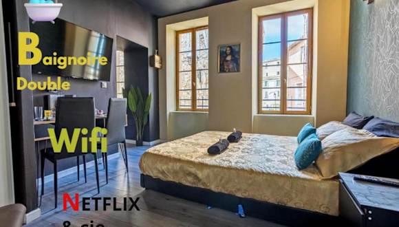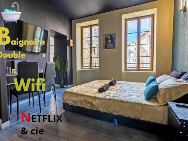 Baignoire Centre Ville Narbonne bietet Übernachtungsmöglichkeiten in einer Ferienwohnung, die den Zugang zu einem Whirlpool umfasst. Die Unterkunft ist gut ausgestattet und bietet modernen Komfort.