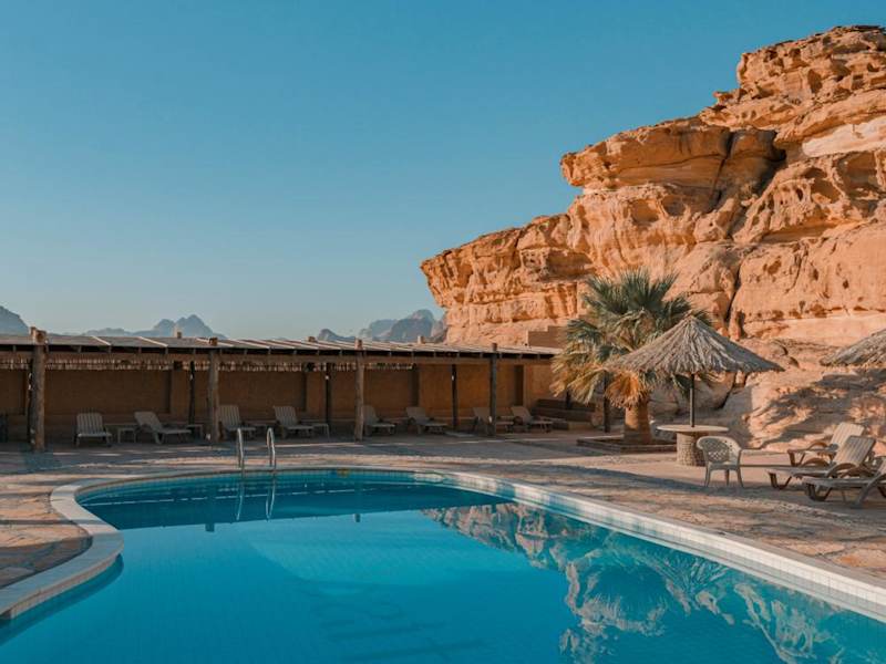 Erleben Sie die wahre Schönheit des Wadi Rum im Bait Ali, einem authentischen Beduinenlager, das Ihnen eine Oase der Ruhe und vielfältige Unterkünfte bietet. Genießen Sie den saisonalen Außenpool und die traditionellen Lagerfeuer und Grillabende. Übernachten Sie in Beduinenzelten oder Chalets, die teilweise über ein eigenes Bad verfügen. Das Camp bietet auch moderne Gemeinschaftsbäder mit Duschen und WCs. Lassen Sie sich von der großen, modernen Küche mit einheimischen arabischen Gerichten verwöhnen. Erleben Sie die atemberaubenden Felsenformationen des Wadi Rum und die Wüste bei Aktivitäten wie Heißluftballonfahrten, Buggy-Safaris, Kamelreiten und Landsailing. Das Bait Ali ist bequem über die Hauptstraße des Wadi Rum erreichbar und liegt in der Nähe von Aqaba und dem Abzweig der Autobahn zur Wüste in Ragdia.