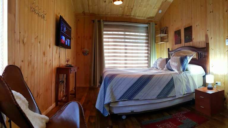 Die Villa Bajo la Cruz del Sur - Conguillio bietet Platz für 6 Personen und verfügt über 3 komfortable Schlafzimmer. Die Küche ist mit einem Geschirrspüler und einem Kühlschrank ausgestattet, so dass Sie Ihre eigenen Mahlzeiten zubereiten können. Im gemütlichen Sitzbereich können Sie sich entspannen und den Flachbild-TV nutzen. Es gibt auch 2 Badezimmer mit Duschen.