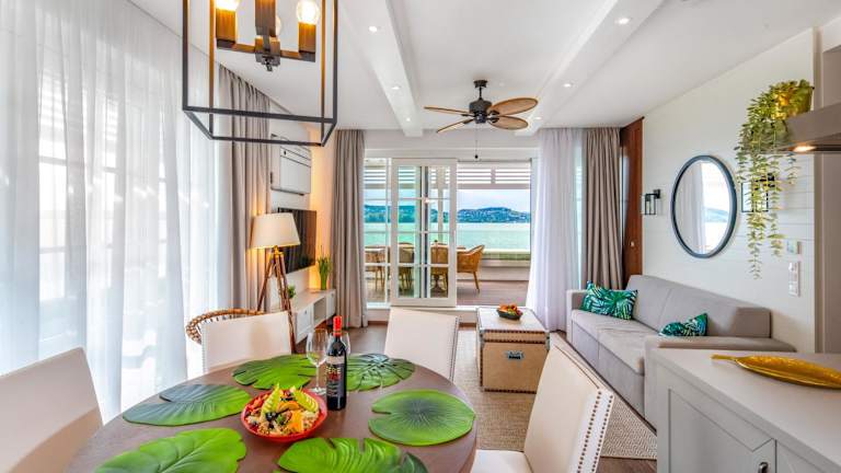 Die klimatisierten Unterkünfte im Balaland Residence Apartmanhotel sind geräumig und bieten einen Balkon mit Seeblick. Jede Unterkunft verfügt über einen gemütlichen Sitzbereich und einen Flachbild-TV. Eine voll ausgestattete Küche mit Mikrowelle und Kühlschrank ist ebenfalls vorhanden. Das private Badezimmer ist mit einer Badewanne oder Dusche ausgestattet. Kostenloses WLAN steht den Gästen zur Verfügung.