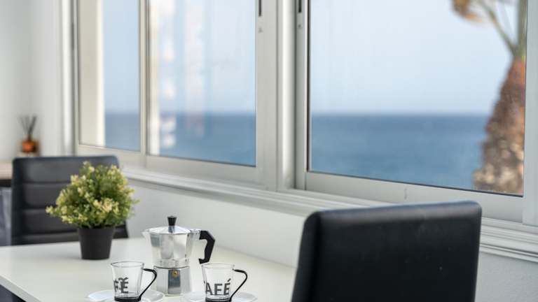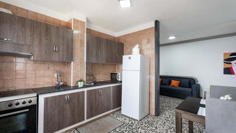 Die Ferienwohnung verfügt über zwei Schlafzimmer, ein Wohnzimmer, eine gut ausgestattete Küche mit Kühlschrank und Mikrowelle, ein Badezimmer mit Dusche sowie einen Balkon mit Meerblick. Handtücher und Bettwäsche werden bereitgestellt.