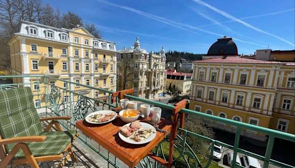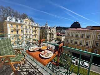 Die Unterkunft Balconies above colonnade apartments befindet sich 700 m von der Kolonnade bei der singenden Fontäne entfernt. Außerdem sind die singende Fontäne und die Burg sowie das Schloss Petschau in der näheren Umgebung, wobei das Schloss 22 km entfernt liegt. Die Umgebung bietet Möglichkeiten zum Wandern, Skifahren und Fahrradfahren.