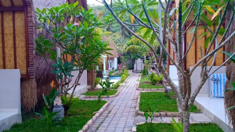 Entspannen Sie am ganzjährig geöffneten Außenpool und genießen Sie die Sonne auf der Terrasse der Bale Lumbung Bungalows. Wenn Sie die Umgebung erkunden möchten, können Sie in der Unterkunft ein Auto mieten und die beliebten Strände Crystal Bay, Pandan und Puyung besuchen.