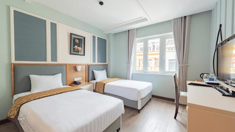 Das Bali Hotel befindet sich in einer günstigen Lage in Ho-Chi-Minh-Stadt. Es liegt nur 10 Gehminuten vom Saigon Exhibition and Convention Centre (SECC) entfernt, was es zu einer idealen Wahl für Geschäftsreisende macht. Die wichtigsten Sehenswürdigkeiten der Stadt wie die Kathedrale Notre Dame, der Palast der Wiedervereinigung und der Markt Ben Thanh sind nur eine kurze Fahrt entfernt. Der Bahnhof Saigon und der internationale Flughafen Tan Son Nhat sind ebenfalls bequem zu erreichen.