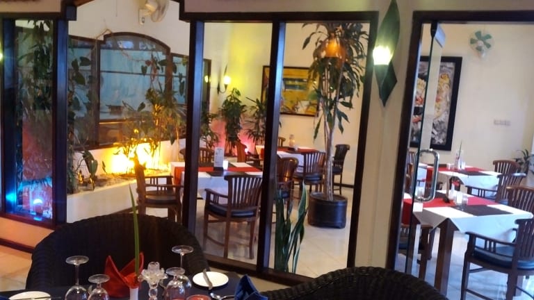 LE GONG Hotel Restaurant - There are three seating Areas to Dine. Inside with Aircondition, Outside Terrace and Poolside. Our Menu contains a Selection of Seafood-Meals from Fish, Crab, Shrimp and Lobster and many more..... International/European Food such as Fillet Steak. Any kind of Chicken, Pork or Chicken-Cordon Blue, Grilled Filetts, Wienerschnitzel, any kind of Pasta and much more. All of our Meat is imported and of the best Quality.