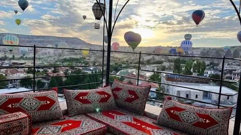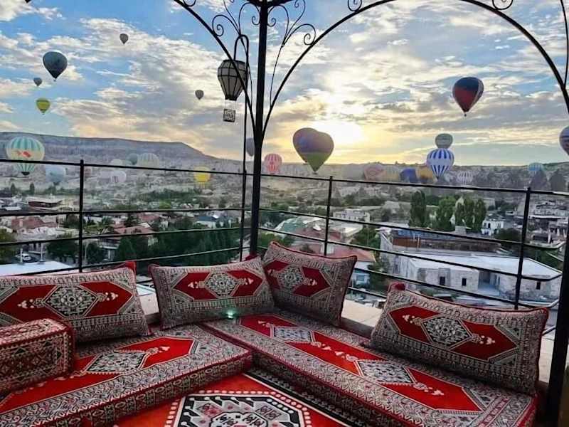Das Balloon View Hotel in Göreme bietet eine komfortable Unterkunft mit einem atemberaubenden Blick auf die Stadt. Genießen Sie die Annehmlichkeiten wie einen Garten, kostenfreie Privatparkplätze und eine Terrasse. Das freundliche Personal steht Ihnen rund um die Uhr zur Verfügung und sorgt dafür, dass Ihr Aufenthalt angenehm und unvergesslich wird.