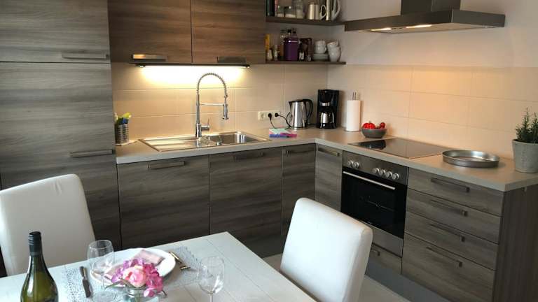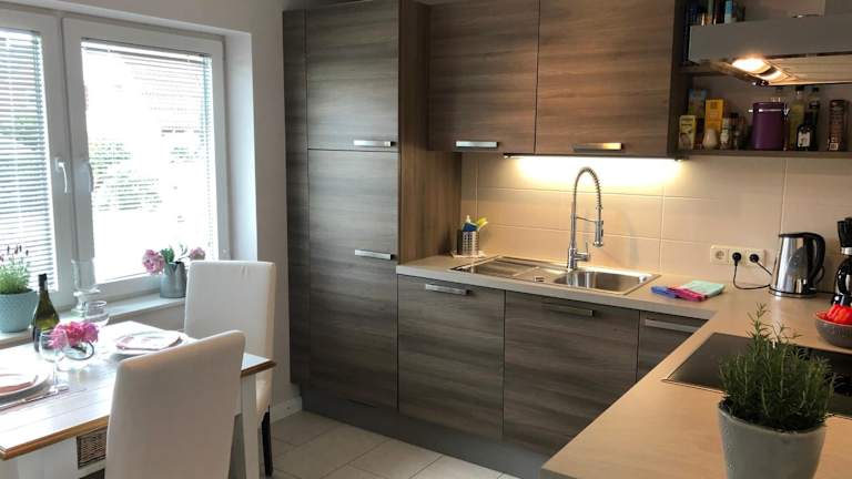 Die Ferienwohnung verfügt über ein Schlafzimmer, ein Wohnzimmer und eine gut ausgestattete Küchenzeile, die mit einem Kühlschrank und einem Geschirrspüler ausgestattet ist. Optional können Handtücher und Bettwäsche bereitgestellt werden. Allergikerfreundliche Zimmer sind ebenfalls verfügbar.