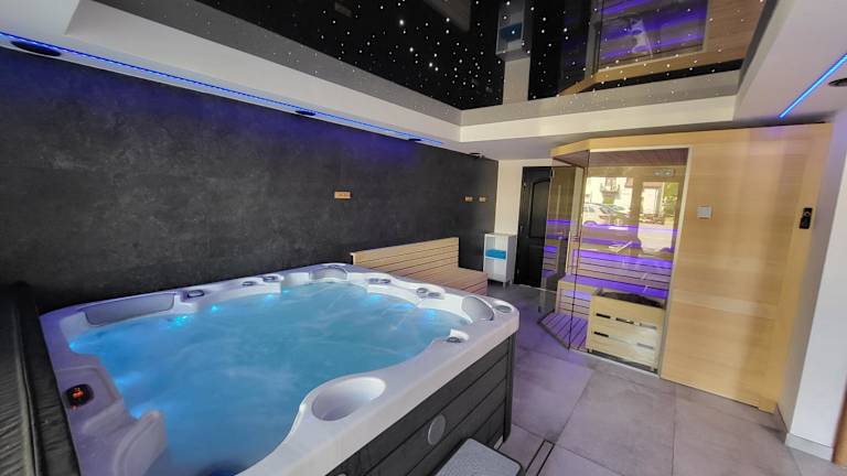 Die Unterkunft bietet Zugang zu einer Sauna und einem Whirlpool. Es stehen Grillmöglichkeiten zur Verfügung, die eine gesellige Atmosphäre schaffen.