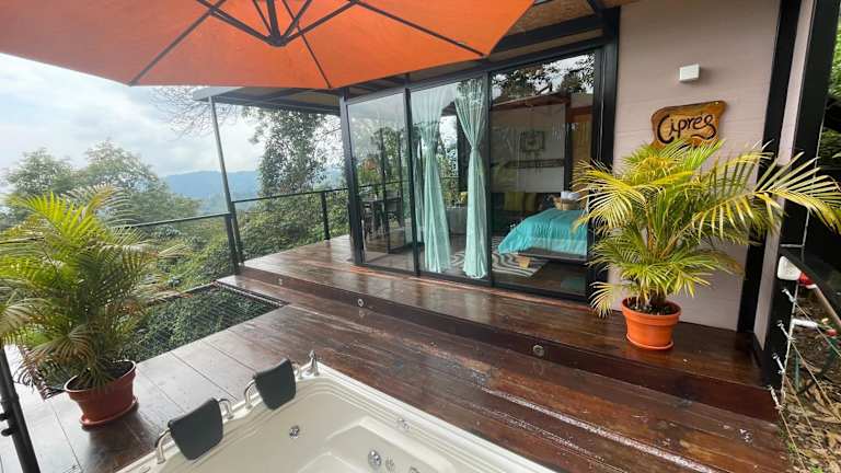 Die Zimmer in Balú Glamping sind mit einem Balkon ausgestattet und verfügen über ein eigenes Badezimmer mit Whirlpool und kostenlosen Pflegeprodukten. Bettwäsche und Handtücher sind vorhanden. Mehrere Zimmer bieten zudem einen Ausblick auf die Berge.
