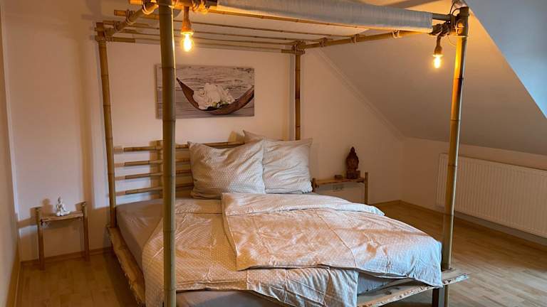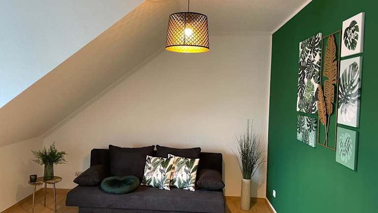 Bambus, Jungle, Dachterrasse & bequem bis Zentrum bietet eine komfortable Ferienwohnung mit Zugang zu einer Terrasse sowie einem Balkon. Zudem steht den Gästen ein Kinderspielplatz zur Verfügung. Kostenloses WLAN ist in der gesamten Unterkunft verfügbar.