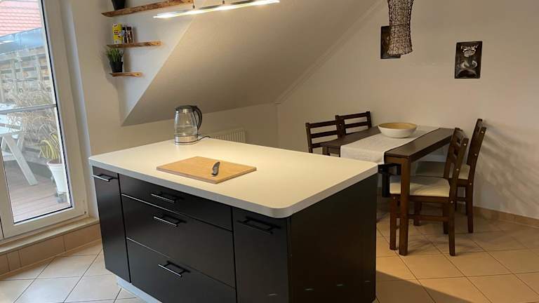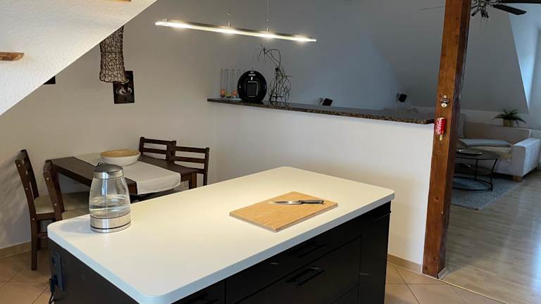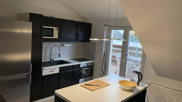 Die Ferienwohnung besteht aus 2 Schlafzimmern, einem Wohnzimmer sowie einer voll ausgestatteten Küche, die mit einem Kühlschrank und einer Kaffeemaschine ausgestattet ist. Des Weiteren gibt es ein Badezimmer, das mit einer Dusche und einem Haartrockner ausgestattet ist. Handtücher und Bettwäsche werden bereitgestellt.