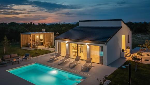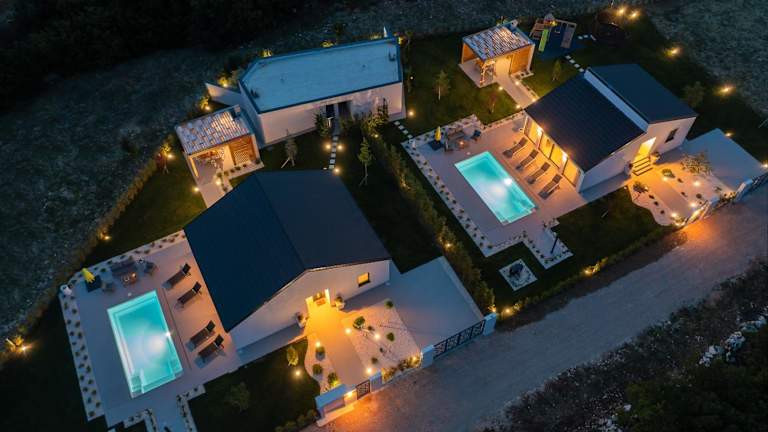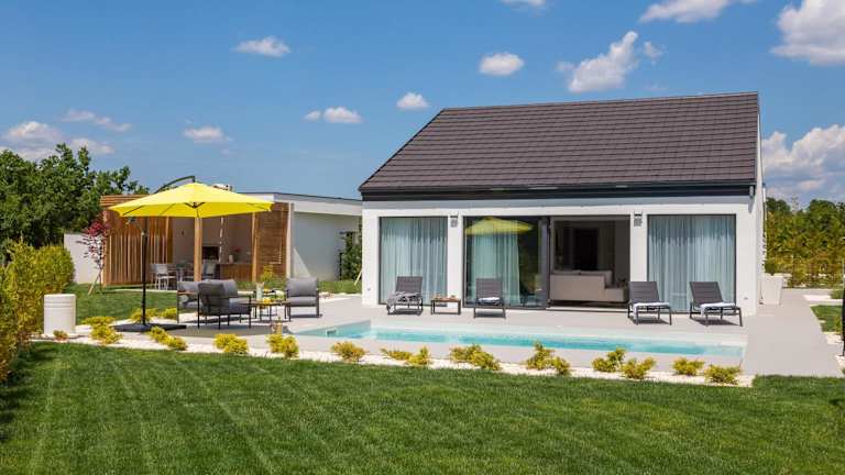 Die Bandelli Villas in Oklaj sind eine ideale Unterkunft für einen erholsamen Urlaub inmitten der Natur. Mit einem eigenen Pool, einem Whirlpool und einer Sauna bieten die Villen luxuriösen Komfort. Gäste können den saisonalen Außenpool, das Fitnesscenter und den Garten genießen. Die voll ausgestattete Küche ermöglicht es Ihnen, Ihre eigenen Mahlzeiten zuzubereiten, und die Terrasse bietet einen herrlichen Blick auf den Pool. Die Bandelli Villas bieten auch ein Spa- und Wellnesscenter mit einem Whirlpool sowie Aktivitäten wie Wandern und Radfahren in der Umgebung.