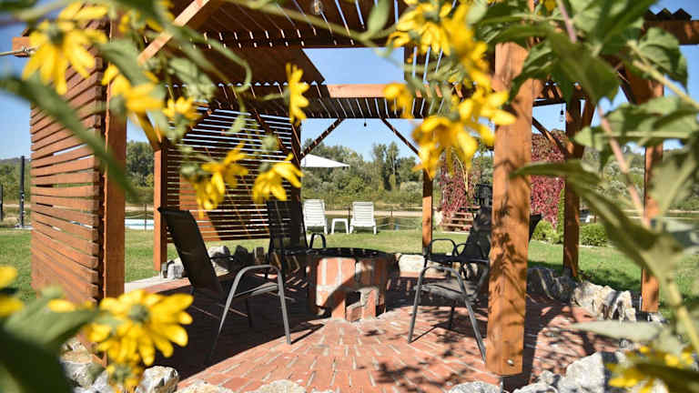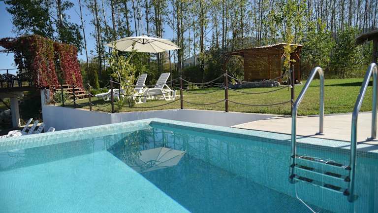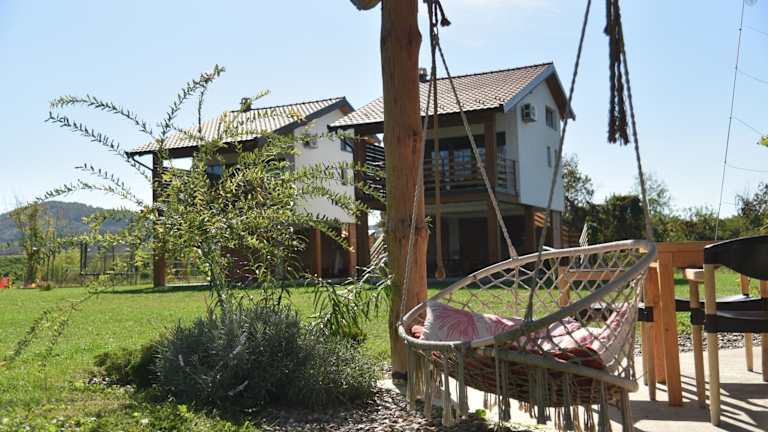 Banja na Drini - Lux vikendice, apartmani, na obali reke bietet Unterkünfte mit kostenlosen Fahrrädern, einem saisonalen Außenpool und einem Garten. Die Unterkunft verfügt über eine Terrasse und eine Bar. Es handelt sich um ein klimatisiertes Ferienhaus mit Bergblick und kostenlosem WLAN.