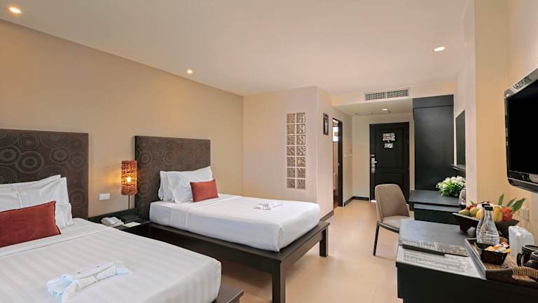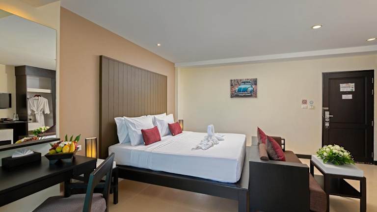 Das Baramee Resortel liegt in zentraler Lage in Patong Beach, direkt am Sandstrand. In der Umgebung finden Sie eine Vielzahl von Restaurants, Bars und Geschäften. Die Talstation der Seilbahn, die zum nahegelegenen Golfplatz führt, ist ebenfalls in der Nähe. Der internationale Flughafen ist etwa 45 km entfernt.