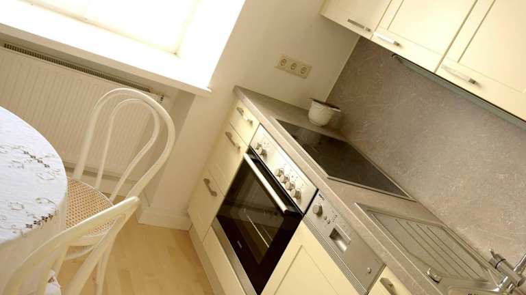 Die Ferienwohnung verfügt über eine voll ausgestattete Küche mit Kühlschrank und Kaffeemaschine, sodass Gäste ihre Mahlzeiten selbst zubereiten können.