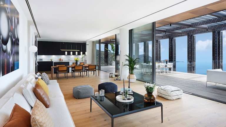 Das Barbaros Reserve Bodrum Residences Managed by Kempinski bietet eine Gartenanlage mit Außenpool, Fitnessraum und Sauna. Die Unterkunft umfasst einen eigenen Strandbereich sowie eine Terrasse und einen Kinderspielplatz.