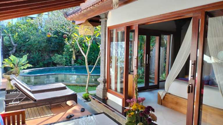Das Hotel Baruna Sari Villa and Yoga Retreat bietet eine ruhige und entspannte Atmosphäre nur 10 Gehminuten vom Zentrum von Ubud entfernt. Mit kostenfreiem WLAN, einem Garten und einem Pavillon im Freien bietet die Villa alles, was Sie für einen erholsamen Aufenthalt benötigen. Die klimatisierten Schlafzimmer sind komfortabel und mit modernen Annehmlichkeiten ausgestattet. Einige der Villen verfügen sogar über einen eigenen Pool. Die Lage des Hotels ist ideal, um die Sehenswürdigkeiten von Ubud zu erkunden und den Affenwald zu besuchen. Zusätzliche Serviceleistungen wie Autovermietung, Wäscheservice und Yogakurse werden gegen Aufpreis angeboten. Das freundliche Personal kümmert sich auch gerne um Ihre kulinarischen Bedürfnisse und bereitet köstliche Mahlzeiten für Sie zu.