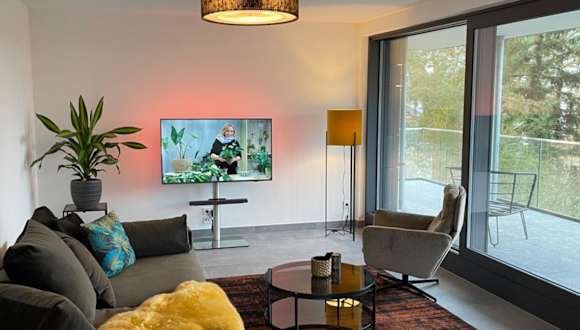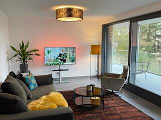 Die Zimmer der Basalt Lodge am Lehnitzsee sind mit einem Satelliten-Flachbild-TV, einem Sitzbereich und einer voll ausgestatteten Küche ausgestattet. Die Küche beinhaltet einen Kühlschrank, Geschirrspüler, Herdplatte, Ofen, Toaster, Kaffeemaschine und Wasserkocher. Jedes Zimmer verfügt über ein eigenes Badezimmer mit einer Dusche und Haartrockner. Die Terrasse und der Gartenblick runden das Angebot ab.
