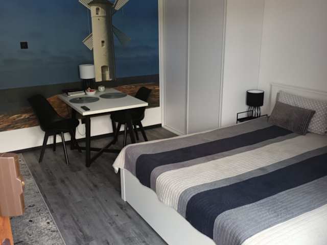 Das Privatzimmer umfasst 1 Schlafzimmer und ein Wohnzimmer. Eine voll ausgestattete Küchenzeile ist vorhanden, die einen Kühlschrank und eine Kaffeemaschine beinhaltet. Das Badezimmer verfügt über eine Dusche und kostenlose Pflegeprodukte. Handtücher und Bettwäsche werden bereitgestellt. Die Unterkunft ist klimatisiert und bietet allergikerfreundliche Zimmer. Zudem sind Nichtraucherzimmer verfügbar, und Haustiere sind erlaubt.