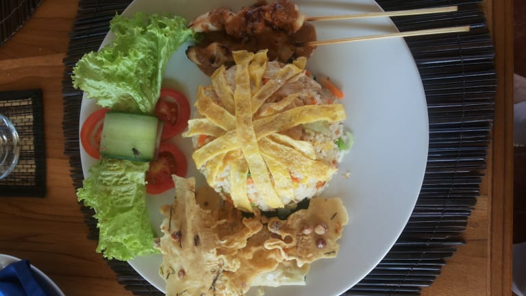 Wir bieten eine grossen Auswahl vom essen an; guten qualitaet und gute Preise (meistens weniger als 8Euro inkl. eine Bier.....) - Internationalen Klassiker, und Indonesisches Spezialitaeten. Unsere menu ist einzelhaft rundum Bali, mit gerichte aus Kalimantan, Jawa, usw - der Beste dass wir finden koennte! Wein und Bier gibts naturlich auch.