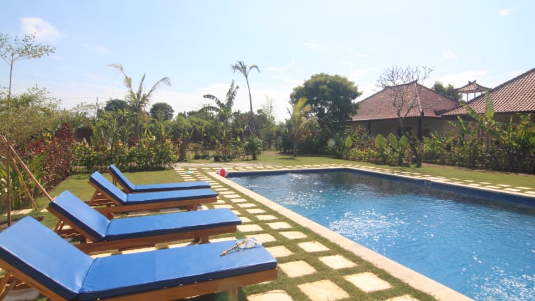 Eine huebsche Bijoux Resort, mit 4 doppel-Zimmer um schoene Gaerten um den Pool plaziert, naehe unsere Restaurant . Die tropischen Gaerten haben rase-flaechen zum hinlegen oder auf den Loungers oder Beanbags zum sitzen. Der lounge/Bar/Restaurant hat Ess-Tische und Sofas, zum Essen und trinken. Eine Ruhigen Stelle, weit genug vom der Haupt-strasse, kein verhkehr, keine krach; keine stoerungen. Der Hafen (fuer Snorchel- und Tauch-trips zu Menjangan) is 200m entfernt, ausserdem gibts nur Dorf in der nahe; keine grosse strasse (1.5 km entfernt) und keine Stadt, hier geniessen Sie der Ruhe Balis. Vom hier aus, koennen Sie zum Menjangan Snorcheln oder Tauchen gehen , tempel besuchen, oder eine Fahrrad-tour um den Dorf und Gegend nehmen, die Salz-Anlage , Smetterlingsfarm, Mangrove-schutzgebiet, Tempels, Heisse-Quellen, Padi-felder, usw zu besichtigen.