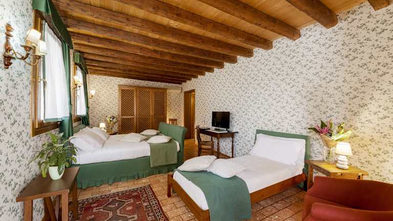 Das Ca' Tessera Hotel verfügt über 16 Zimmer, die alle mit modernen Annehmlichkeiten ausgestattet sind. Die Zimmer sind gemütlich eingerichtet und bieten eine angenehme Atmosphäre für einen erholsamen Aufenthalt. Zur Ausstattung gehören ein eigenes Bad, Sat-TV und Klimaanlage. Einige Zimmer verfügen auch über rollstuhlgerechte Einrichtungen und barrierefreie Badezimmer.