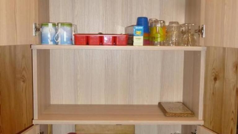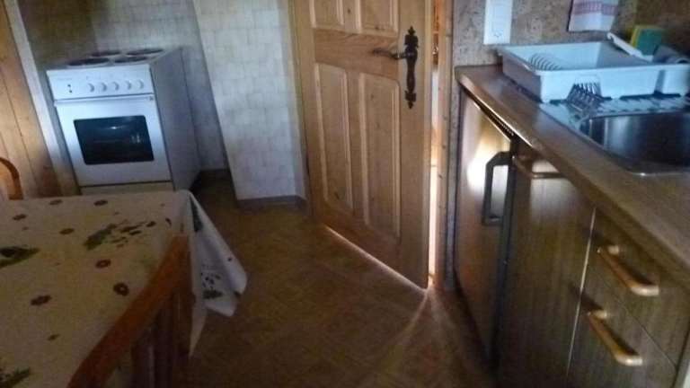 Die Küchenzeile der Unterkunft ist ausgestattet mit einem Kühlschrank, einem Ofen, einer Herdplatte, einer Kaffeemaschine und einem Wasserkocher.