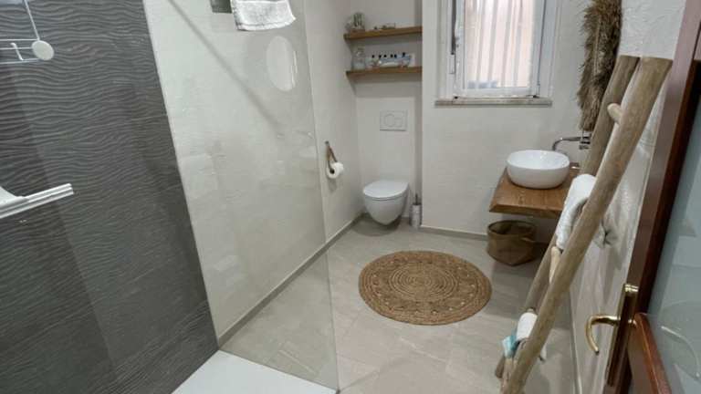 Die Ferienwohnung ist klimatisiert und verfügt über 2 Schlafzimmer, ein Wohnzimmer, eine voll ausgestattete Küche mit Kühlschrank und Kaffeemaschine sowie 2 Badezimmer mit Bidet und Dusche. Handtücher und Bettwäsche sind ebenfalls vorhanden.