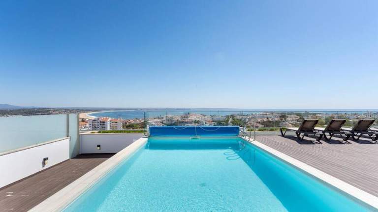 Bay view Lagos bietet Übernachtungsmöglichkeiten in einer klimatisierten Unterkunft, die mit einem eigenen Pool, einem Balkon und einem Blick auf das Meer ausgestattet ist. Die Ferienwohnung beinhaltet 2 Schlafzimmer und 3 Badezimmer.
