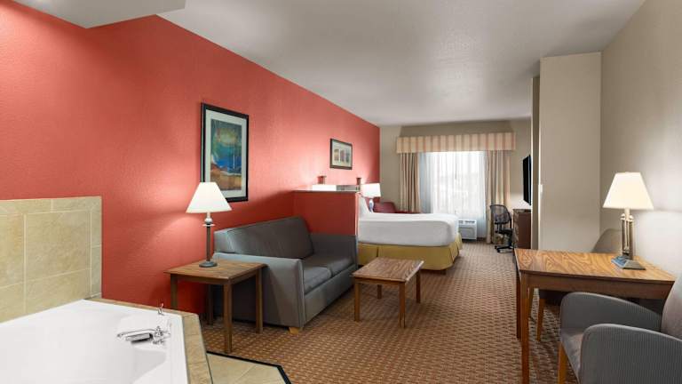 Das Baymont Inn & Suites by Wyndham Sturgis bietet eine umfassende Ausstattung und eine freundliche Atmosphäre. Die Unterkunft verfügt über 84 Zimmer, die sich auf vier Etagen verteilen, sowie über eine Rezeption, einen Aufzug, einen Gepäckraum und einen Souvenirshop. Zu den Annehmlichkeiten gehören WLAN, ein 24-Stunden-Sicherheitsdienst sowie Parkmöglichkeiten. Die Unterkunft bietet behindertengerechte Annehmlichkeiten und Zimmer.