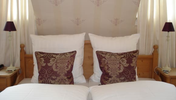 Das Hotel verfügt über insgesamt 22 Zimmer (Doppel- und Einzelzimmer). Die Zimmer sind liebevoll und individuell gestaltet. Es sind nicht die typischen Hotelräumlichkeiten. Die Tapeten haben unterschiedliche Farben und Muster. Lampen, Kisschen und Accessoires sind farblich darauf abgestimmt. Bis auf ein Zimmer sind alle mit Weichholzmöbel aus Fichtenholz eingerichtet und die Böden mit hochwertigen, geölten Parkettböden ausgestattet. Die Betten sind für Allergiker geeignet. Haarföhne befinden sich in den Bädern. Alle Matrazen sind neu- und hochwertig. Die meisten aus dem Hause Frischauf.