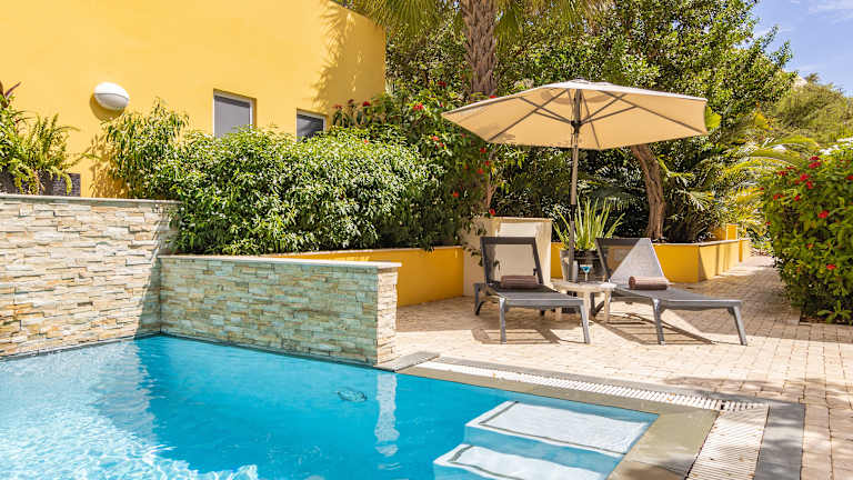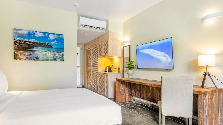 Das Bayside Boutique Hotel ist ein zentral gelegenes Luxusresort direkt am Strand des Blue Bay Golf & Beach Resort. Unsere Zimmer bieten alles, was Sie für eine wundervolle Nacht oder einen längeren Aufenthalt auf Curacao brauchen - und vieles mehr. Wählen Sie aus unserem Classic King Zimmer, Superior King Zimmer, Deluxe King Zimmer und Sunset Suite. Das Hotel ist eine 10-minütige Fahrt von allem entfernt; im lebhaften Viertel Pietermaai, dem Meeresaquarium und nur 7 Autominuten vom Zentrum von Willemstad mit seinem schönen schwimmenden Markt und der historischen Königin-Emma-Brücke entfernt. Wir befinden uns 10 Fahrminuten vom Flughafen Hato und 5 Fahrminuten vom Curacao Medical Centre entfernt.