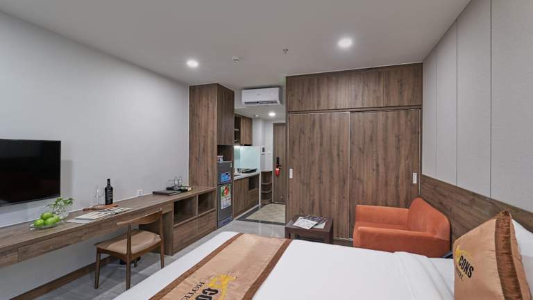Die Unterkünfte sind komplett ausgestattet und verfügen über ein eigenes Badezimmer mit Dusche und kostenlosen Pflegeprodukten. Zu den Annehmlichkeiten der Zimmer zählen ein Flachbild-TV, Klimaanlage, ein Kleiderschrank und ein Wasserkocher. Bestimmte Zimmer bieten zusätzlich einen Sitzbereich.