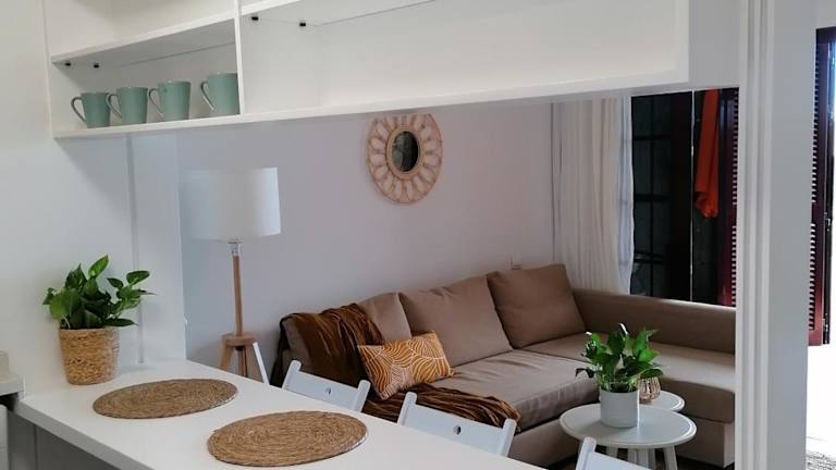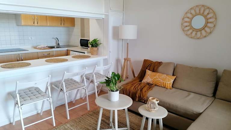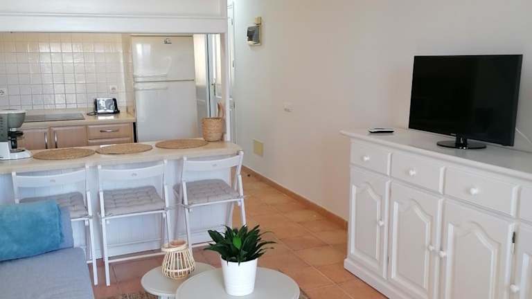 Die Ferienwohnung verfügt über Klimaanlage, ein Schlafzimmer, ein Wohnzimmer sowie eine voll ausgestattete Küche mit Mikrowelle und Wasserkocher. Es gibt ein Badezimmer mit Badewanne und Haartrockner sowie einen Flachbild-TV.