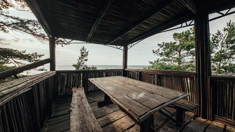 Die Unterkunft befindet sich in Bernāti, nur wenige Schritte vom Strand entfernt, und bietet einen eigenen Strandbereich sowie einen Garten.