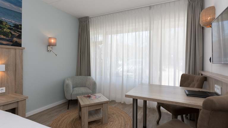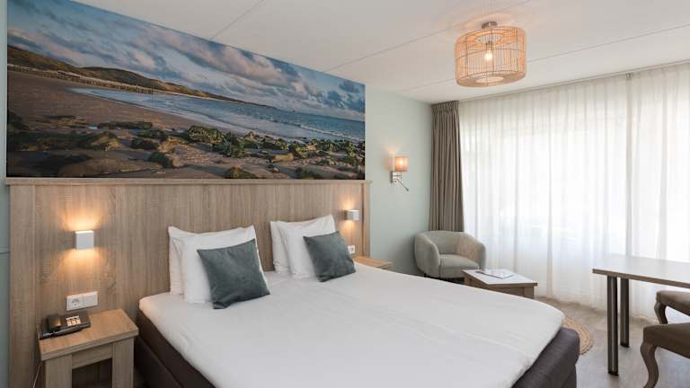 Die Zimmer im Beach Hotel sind komfortabel und modern eingerichtet. Jedes Zimmer verfügt über eine eigene Terrasse, einen Balkon oder einen französischen Balkon. Die Zimmer sind mit Betten von Auping oder Eastborn, Klimaanlage und einem 42-Zoll-LED-TV ausgestattet. Das eigene Badezimmer ist mit einer Dusche, einem WC und einem Waschtisch ausgestattet. Kostenfreies WLAN ist in allen Zimmern verfügbar.