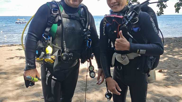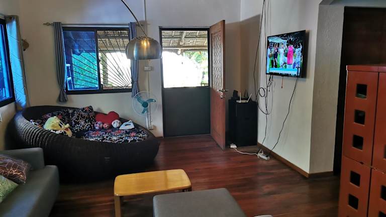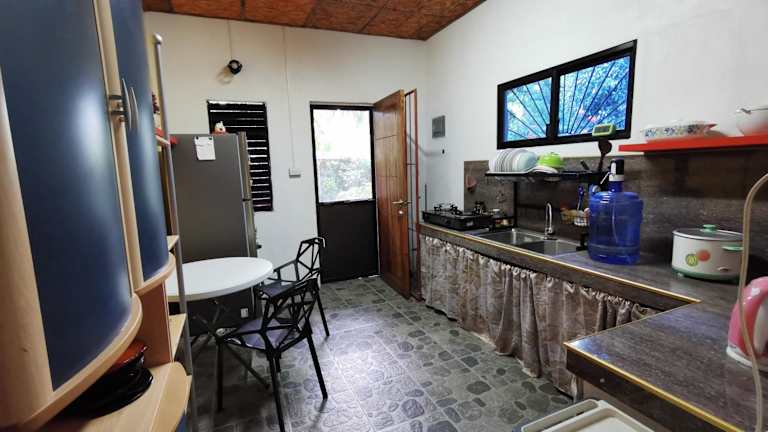 Das klimatisierte Ferienhaus im Tropical Beachhouse Dauin at Diving Sanctuary bietet Platz für bis zu 6 Personen. Es verfügt über 3 Schlafzimmer, ein gemütliches Wohnzimmer und eine voll ausgestattete Küche mit einem Kühlschrank und einer Kaffeemaschine. Die 2 Badezimmer sind mit Duschen ausgestattet und Handtücher und Bettwäsche werden gestellt. Genießen Sie die Privatsphäre und den Komfort eines eigenen Ferienhauses.