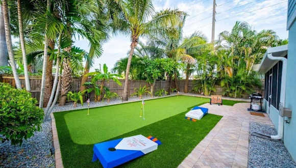 Das Beach house w/Putting Green/Game Rm/Rooftop Deck befindet sich in Cocoa Beach und bietet eine großartige Lage für alle, die Strand und Meer lieben. Der South Cocoa Beach ist nur 100 m entfernt und der Cocoa Beach ist weniger als 1 km entfernt. Sie können auch den Tables Beach in nur 15 Gehminuten erreichen. In der Umgebung gibt es viele weitere Aktivitäten und Sehenswürdigkeiten zu entdecken, wie die United States Coast Guard Station Port Canaveral Wharf und den Hafen von Port Canaveral, die beide etwa 18 km bzw. 19 km entfernt sind. Der internationale Flughafen Melbourne ist der nächstgelegene Flughafen und etwa 23 km vom Ferienhaus entfernt.